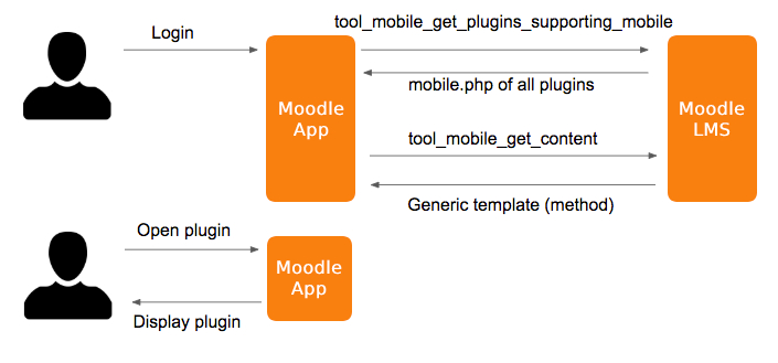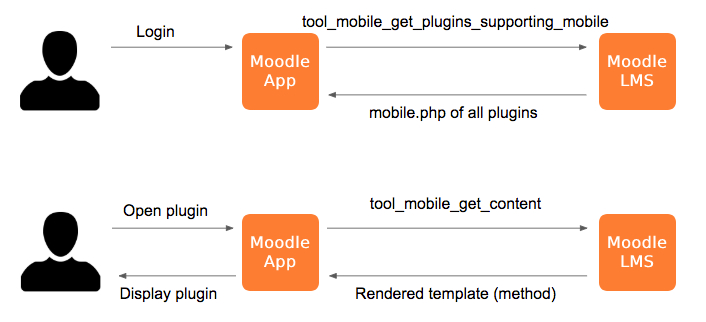 • These functions will receive arguments such as userid and other relevant details of the app like app version or current language. Depending on the type of plugin, they will also receive some contextual data like courseid or cmid.